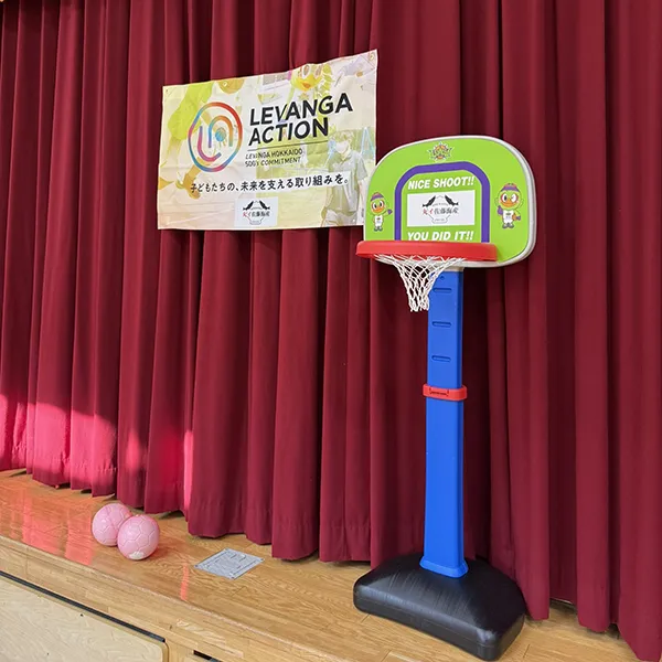 ≪レバンガ北海道×丸イ佐藤海産バスケットゴール&ボール寄贈≫